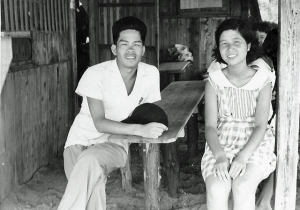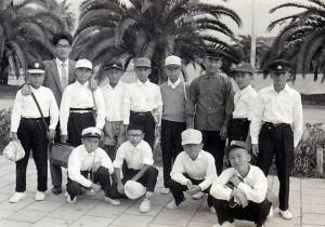 | 修学旅行 宮崎駅 新穂先生と男子 |